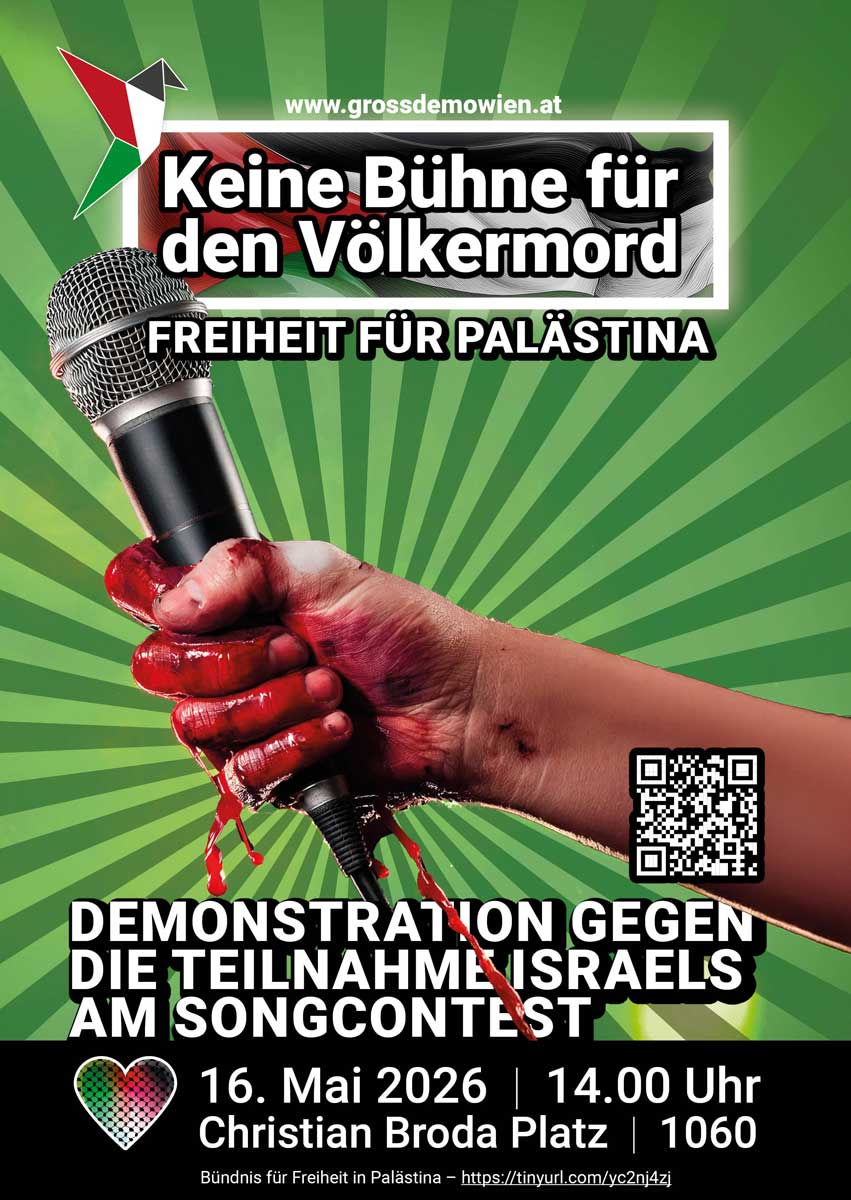 • Du kannst dir die Poster und Flyer abholen oder einfach selbst ausdrucken. Bitte schreib und dazu unter solivision@palaestinasolidaritaet.at oder ruf kurz an 06804402085